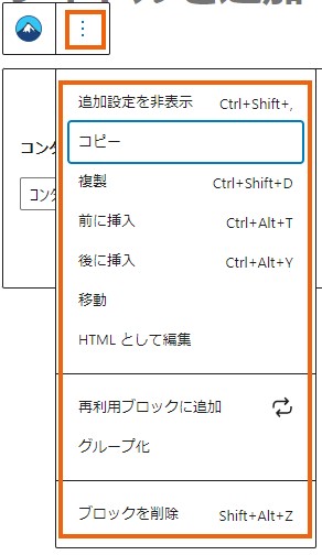 挿入するブロックを間違えた場合は、他のブロックに変更できる。があまり選択肢の幅はない。よく使うブロックに限られる。その為このブロックを削除して改めて選択し直す必要があります。