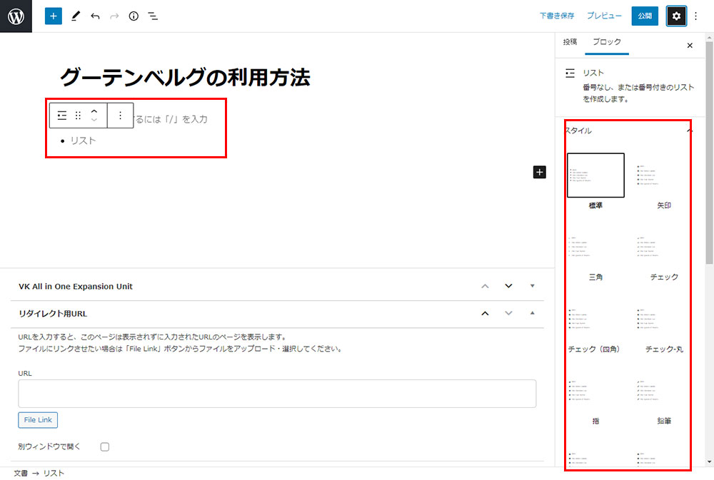 - ブロックエディタ(Gutenberg)リスト編の使い方がわからない?