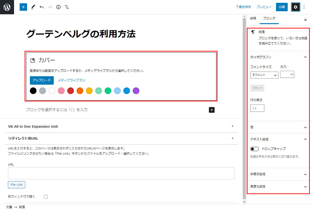 - ブロックエディタ(Gutenberg)カバー編の使い方がわからない?