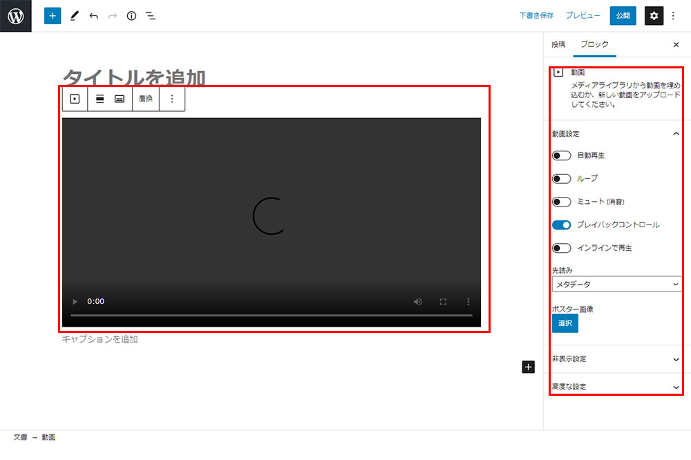 自動再生・ループ・ミュート・プレイバックコントロール・インラインで再生・先読み・ポスター画像