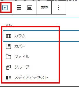 挿入するブロックを間違えた場合は、他のブロックに変更できる。があまり選択肢の幅はない。よく使うブロックに限られる。その為このブロックを削除して改めて選択し直す必要があります。