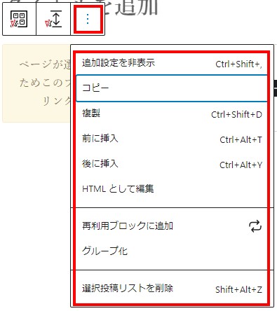挿入するブロックを間違えた場合は、他のブロックに変更できる。があまり選択肢の幅はない。よく使うブロックに限られる。その為このブロックを削除して改めて選択し直す必要があります。