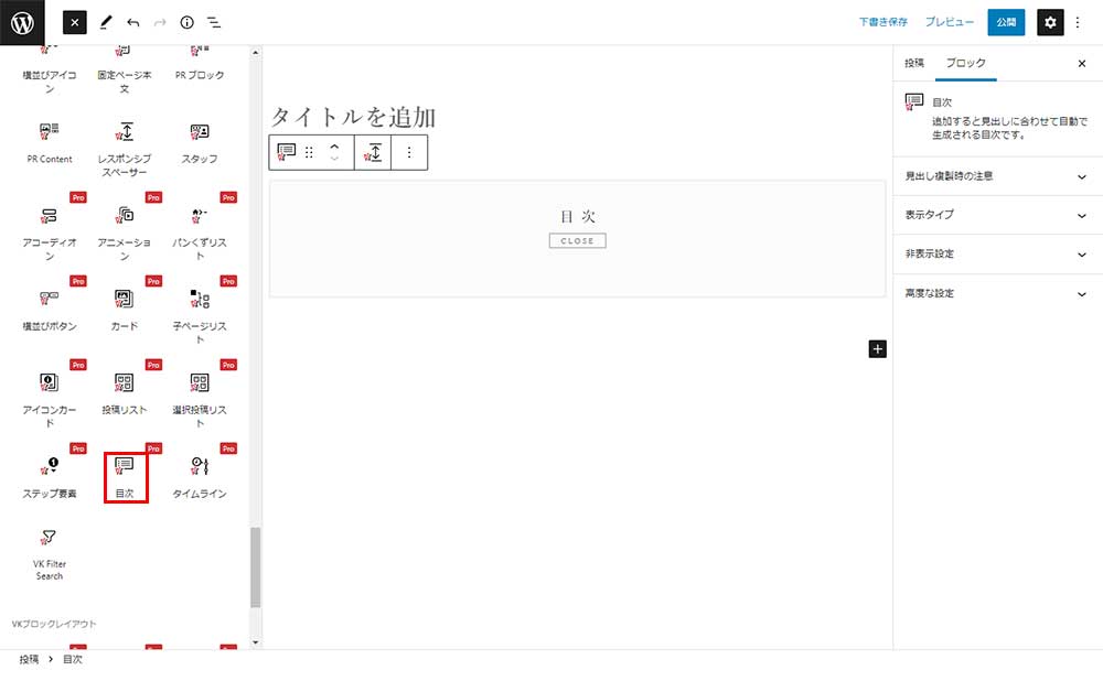 - ブロックエディタ(Gutenberg)VKブロックPRO 目次の使い方を紹介します。
