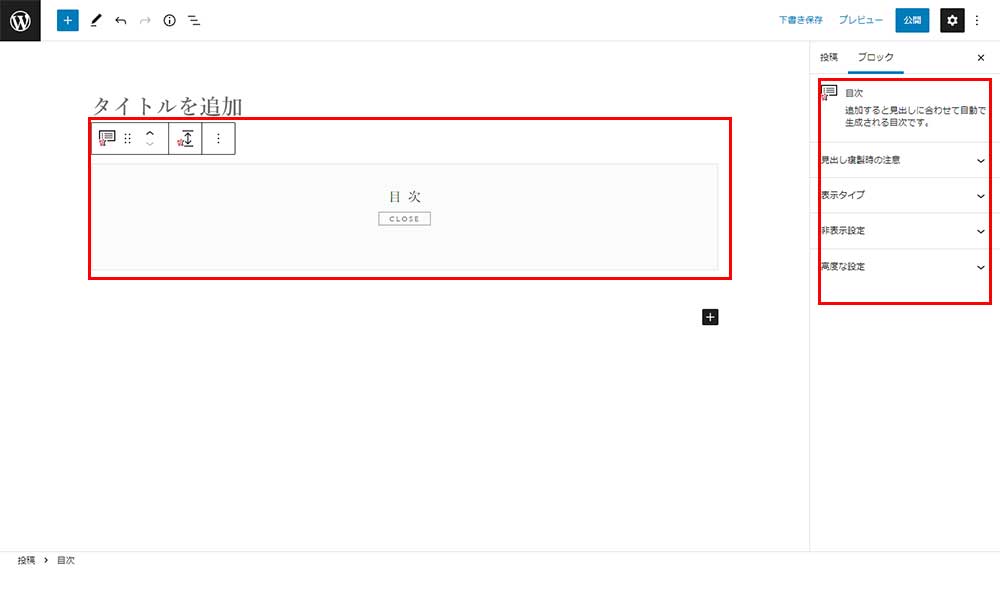 目次現在選択されているブロック名
