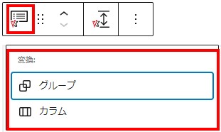 挿入するブロックを間違えた場合は、他のブロックに変更できる。があまり選択肢の幅はない。よく使うブロックに限られる。その為このブロックを削除して改めて選択し直す必要があります。