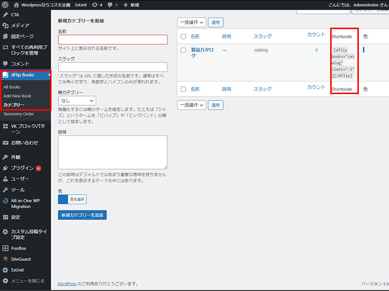ショートコードを固定ページのショートコードブロックに張り付けるとカテゴリー登録の一覧を表示します。使用用途に応じて使い分けされると良いと思います。