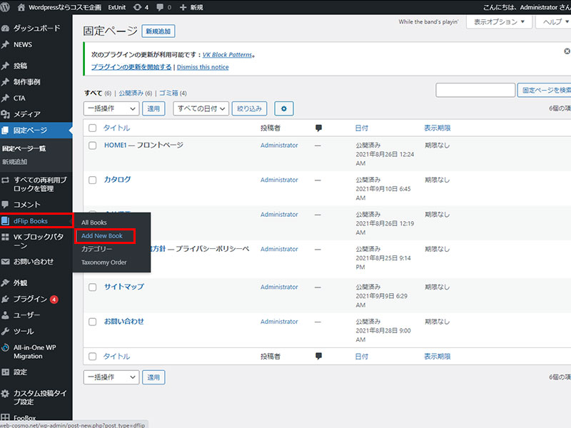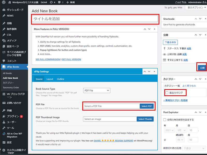 ダッシュボード> Flip Books>Add New Book とお進みください。
