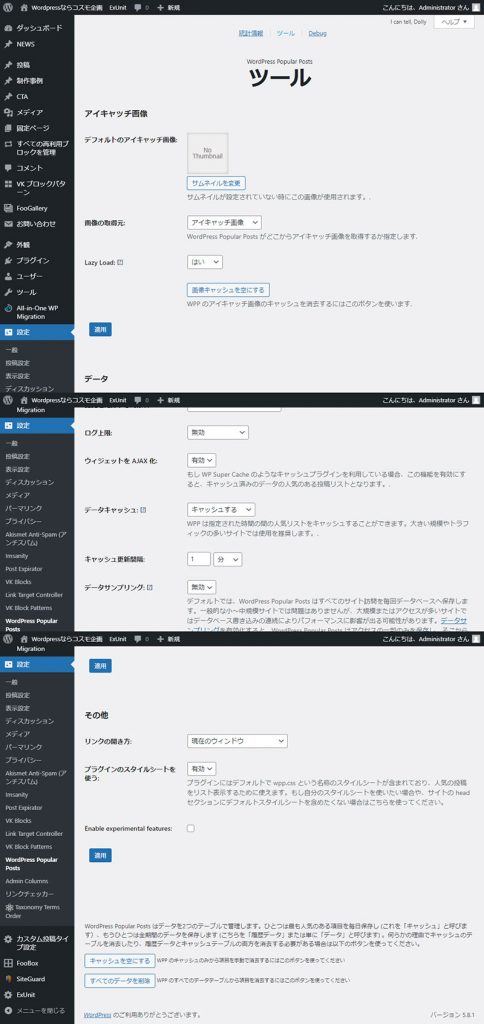 キャッシュ系のプラグインを使用している場合は、 WordPress Popular Posts と相性が悪くアクセス数がカウントできない時がある。その場合は、「有効」を選択する。