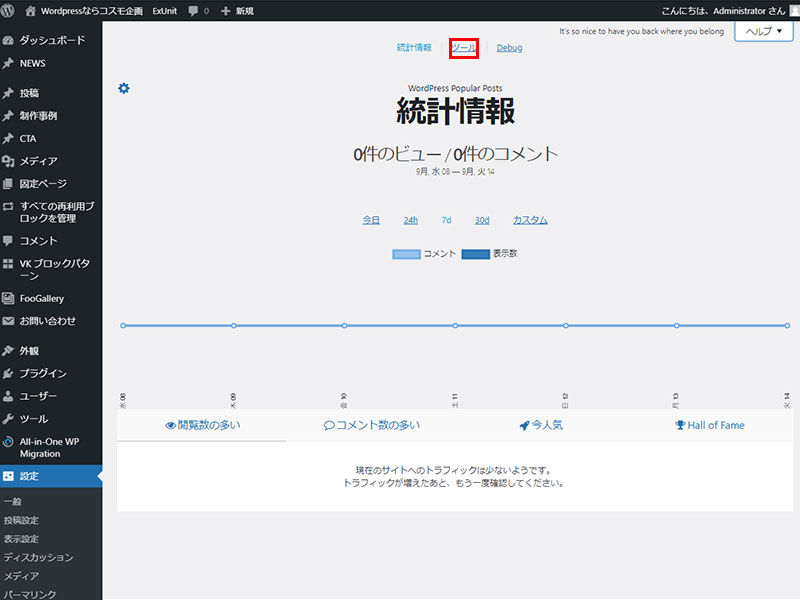 ダッシュボード>WordPress Popular Posts>ツール とお進みください。