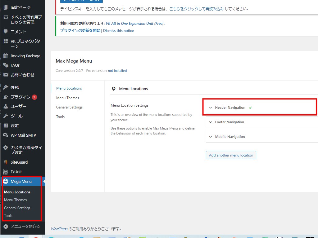 MegaMenuはWordpressのメニューに配置されます。
