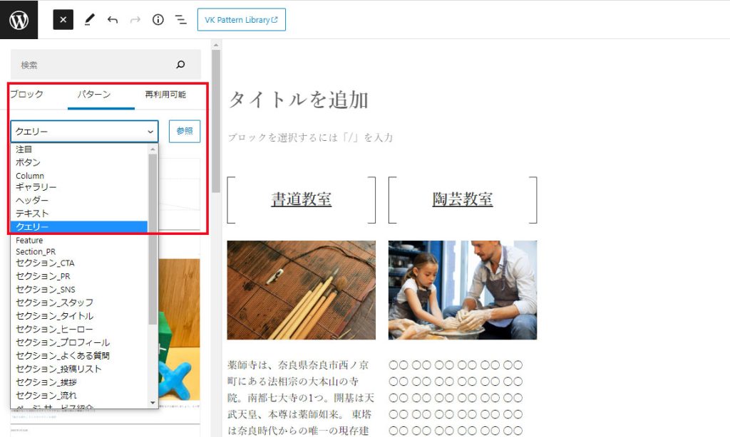 | VK Block Patterns プラグイン Ver | 1.17.4|※バージョンによっては説明に食い違が生じます。 |