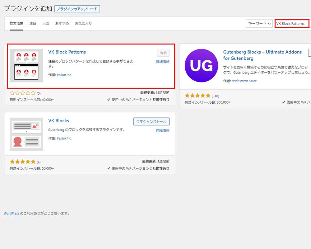 VK Block Patternsのインストール