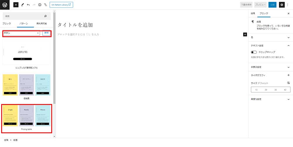 - ブロックエディタ(Gutenberg)VK Block Patterns ボタンその3(Pricing table)の使い方がわからない?