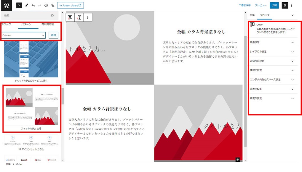 - ブロックエディタ(Gutenberg)VK Block Patterns Column(フィットカラム 全幅)の使い方がわからない?