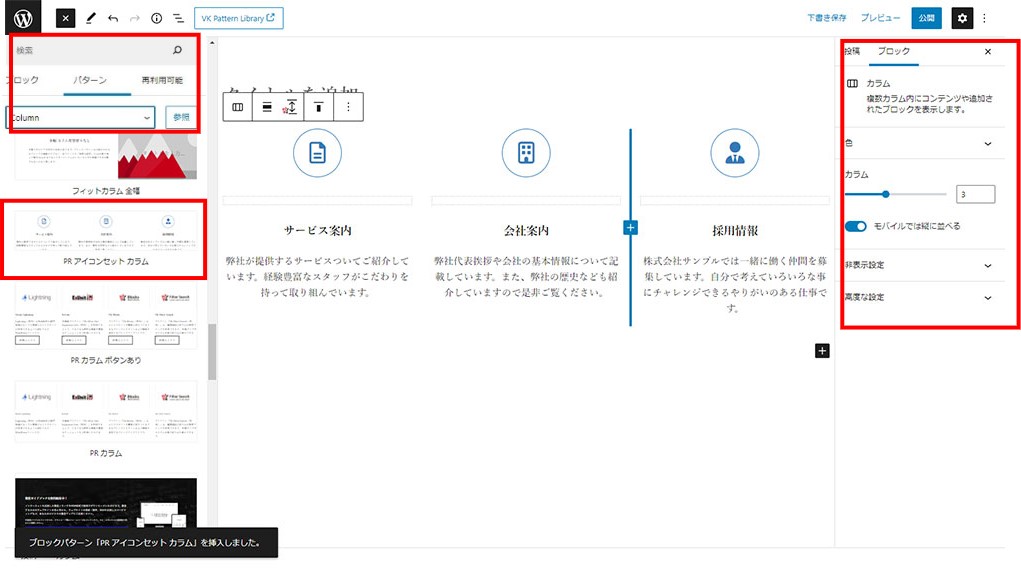 - ブロックエディタ(Gutenberg)VK Block Patterns Column(PR アイコンセット カラム)の使い方がわからない?