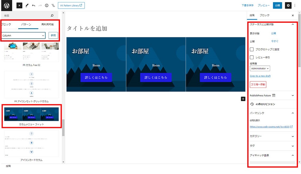 - ブロックエディタ(Gutenberg)VK Block Patterns Column(カラムメニュー フィット)の使い方がわからない?
