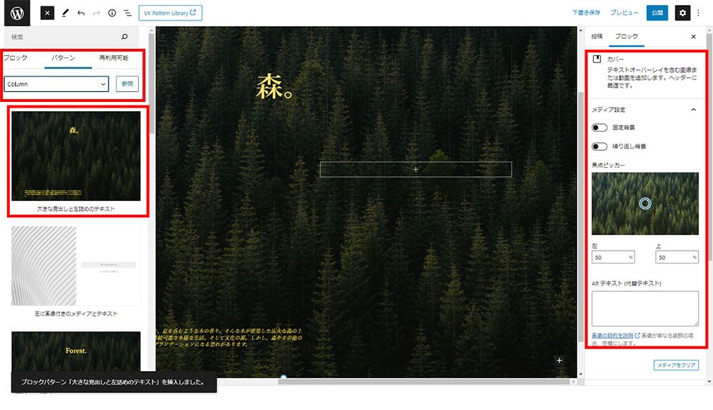 - ブロックエディタ(Gutenberg)VK Block Patterns ヘッダー(大きな見出しと左詰めのテキスト)の使い方がわからない?