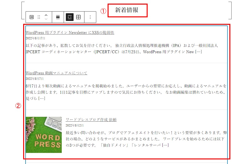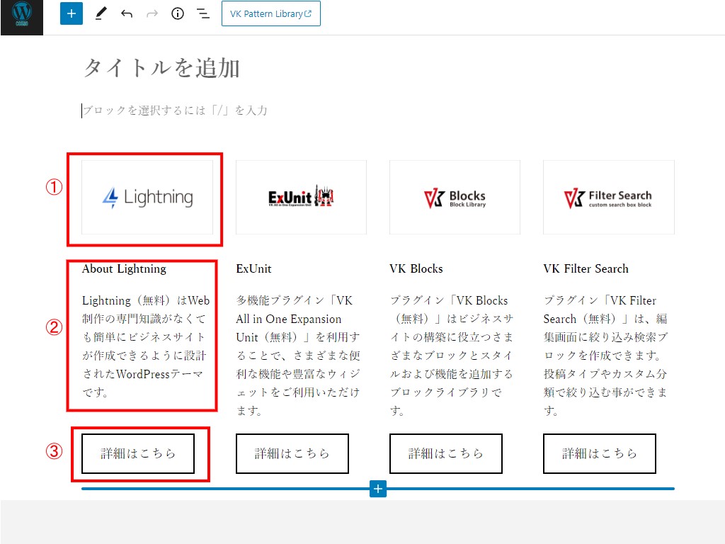 VK Block Patterns 注目(右下に説明がついた画像)の使い方