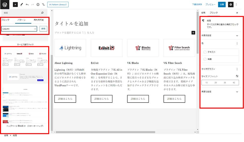 - ブロックエディタ(Gutenberg)VK Block Patterns ページ_全幅(トップページ 無料版 01 スタートトップ)の使い方がわからない?