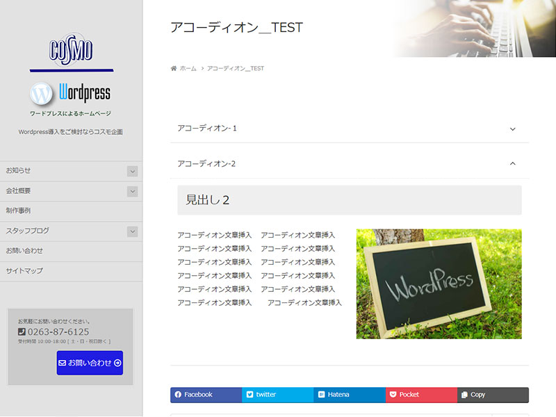 今まで簡単には制作できなかったアコーディオン。Gutenberg(グーテンベルグ)のVKブロック PROから簡単に制作が出来る様になりました。