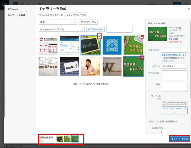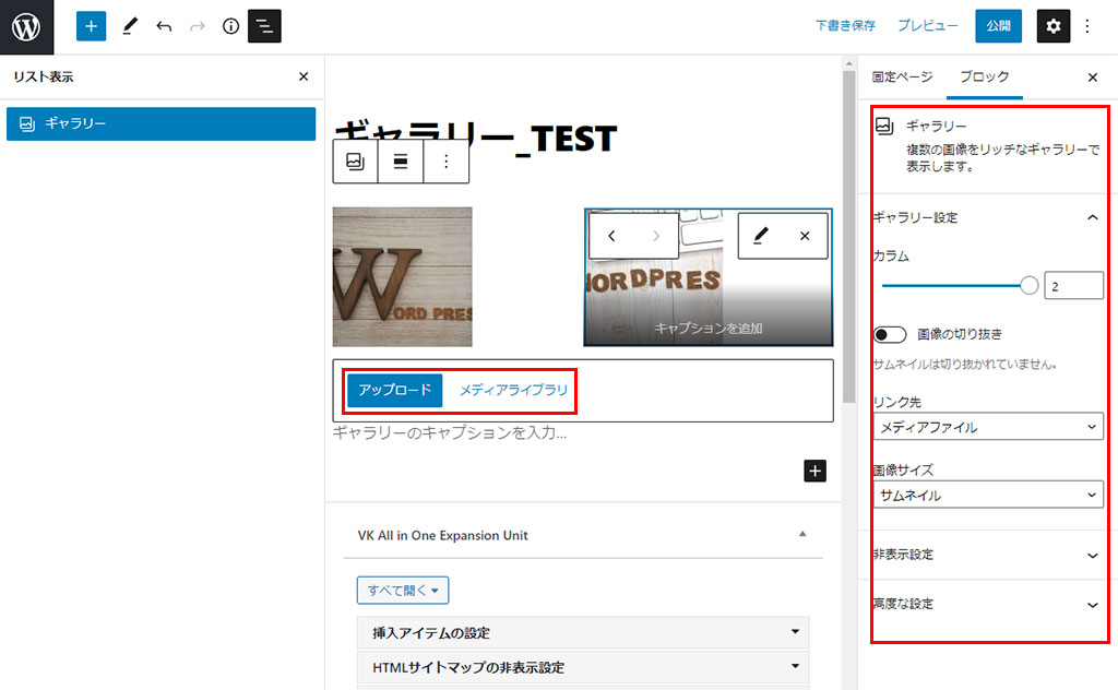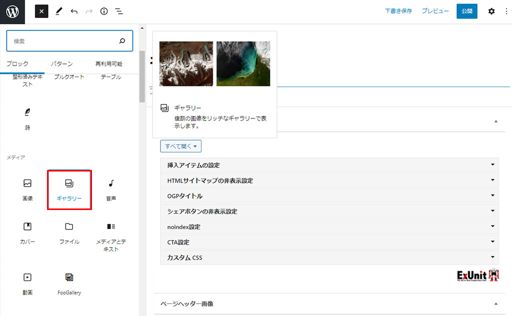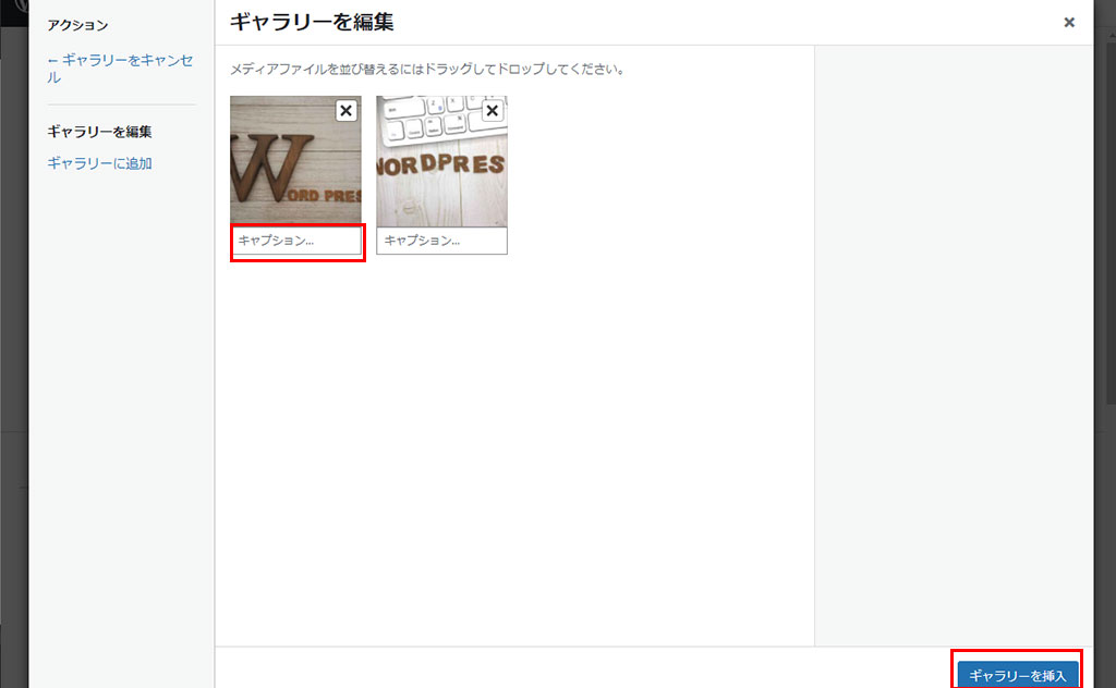 メディアよりギャラリーを選択後画像挿入の入り口が表示されます。