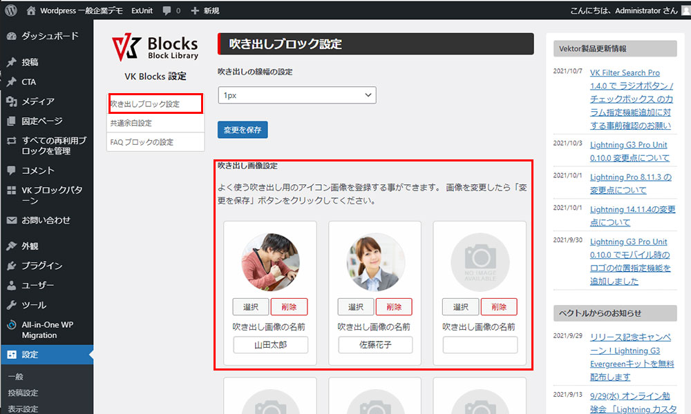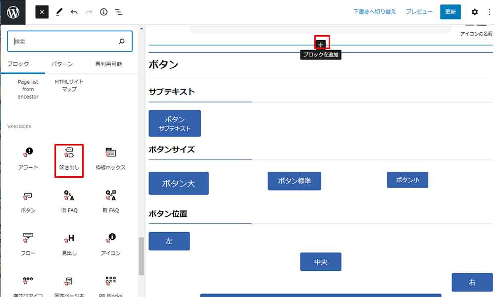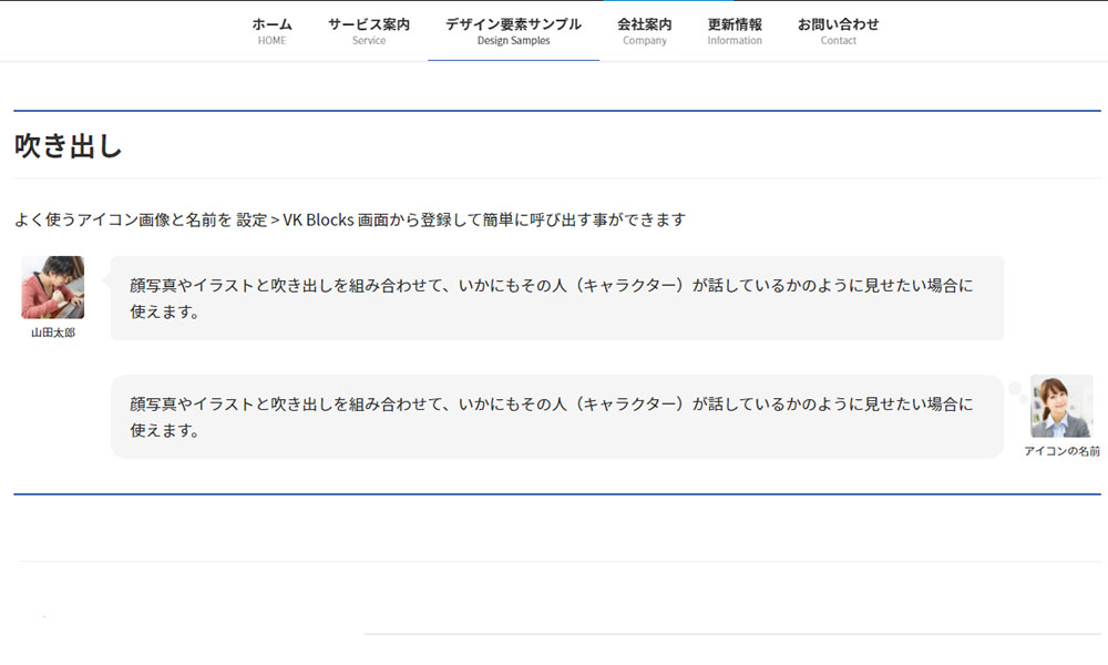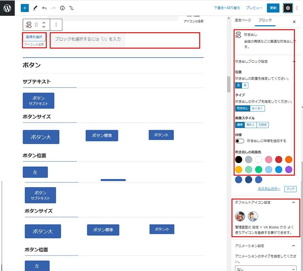 2021年10月9日 2022年9月23日 Administrator WordPress テーマ他 WordPress VK ブロック の吹き出しの使い方 顔写真やイラストと吹き出しを組み合わせて、いかにもその人(キャラクター)が話しているかのように見せたい場合に簡単に使えます。 ボックス挿入~設定方法 +マークのアイコンをクリックしブロック選択画面を開く VK BLOCKS より吹き出しを選択後テンプレートが表示されます。 画像より顔アイコンやイラストを登録する。その横にはコメント(文章挿入)右側には吹き出しの設定が可能です。吹き出し画像の位置、背景色の設定、枠線有無など多数用意されています。また、アイコンをデフォルト設定もできます。下部を参照 ダッシュボード>設定>VK BLOCKS の順で進み上図のデフォルト設定します。 こんな感じで表示 STEP1 Follow me! @webplannercosmo コメントを残す コメントをキャンセルメールアドレスが公開されることはありません。 ※ が付いている欄は必須項目ですコメント ※ 名前 ※ メール ※ サイト 次回のコメントで使用するためブラウザーに自分の名前、メールアドレス、サイトを保存する。 Δ