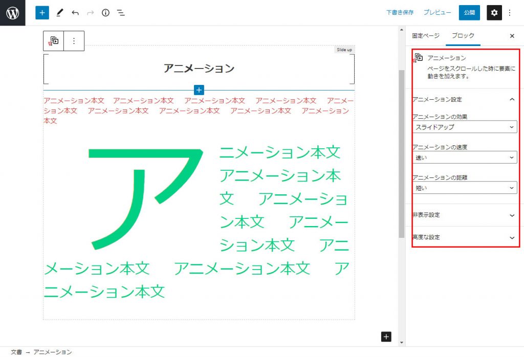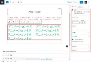 右側の設定画面で各種設定(アニメーションの種類など)施邸を行います。