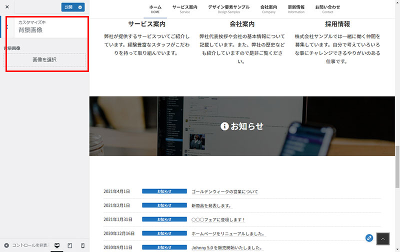 WordPress テーマ「Lightning」のホームページ作成にあたり「背景色・背景画像」の設定方法を説明いたします。