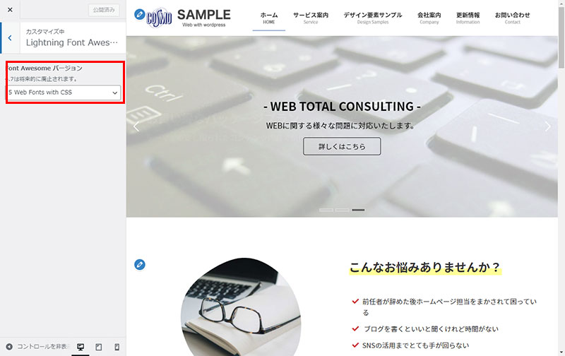 WordPressのLightningの設定方法(Font Awesome バージョン)について説明します。