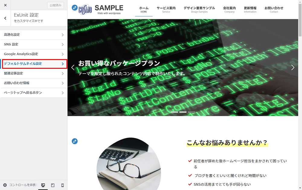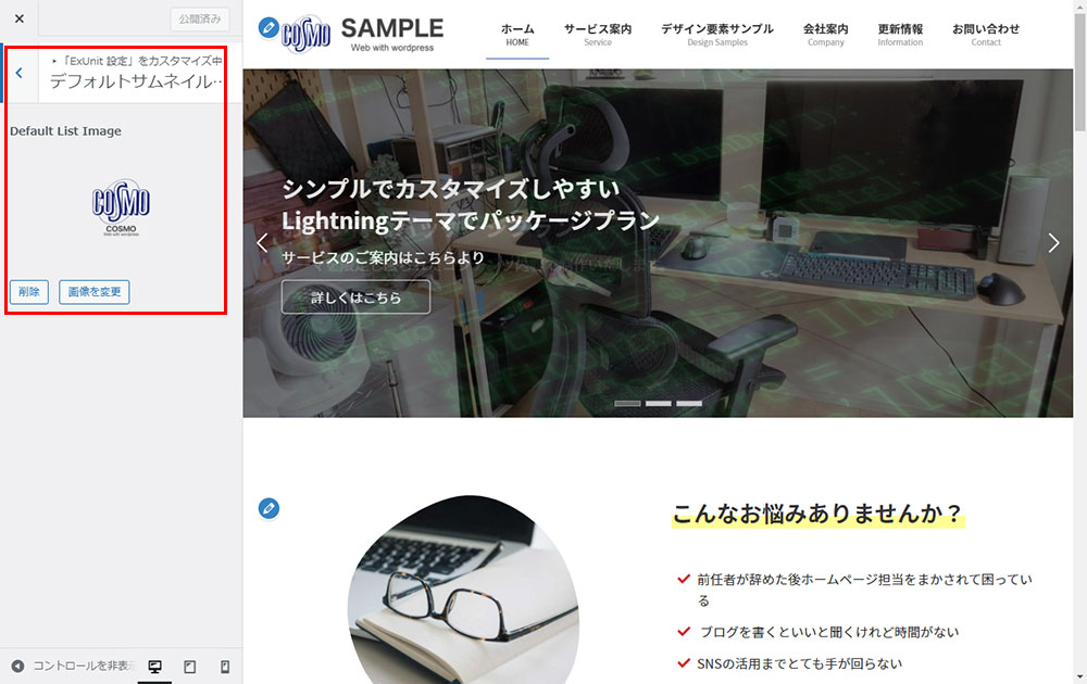 WordPressのLightningの設定方法(ExUnit 設定-デフォルトサムネイル設定)について説明します。