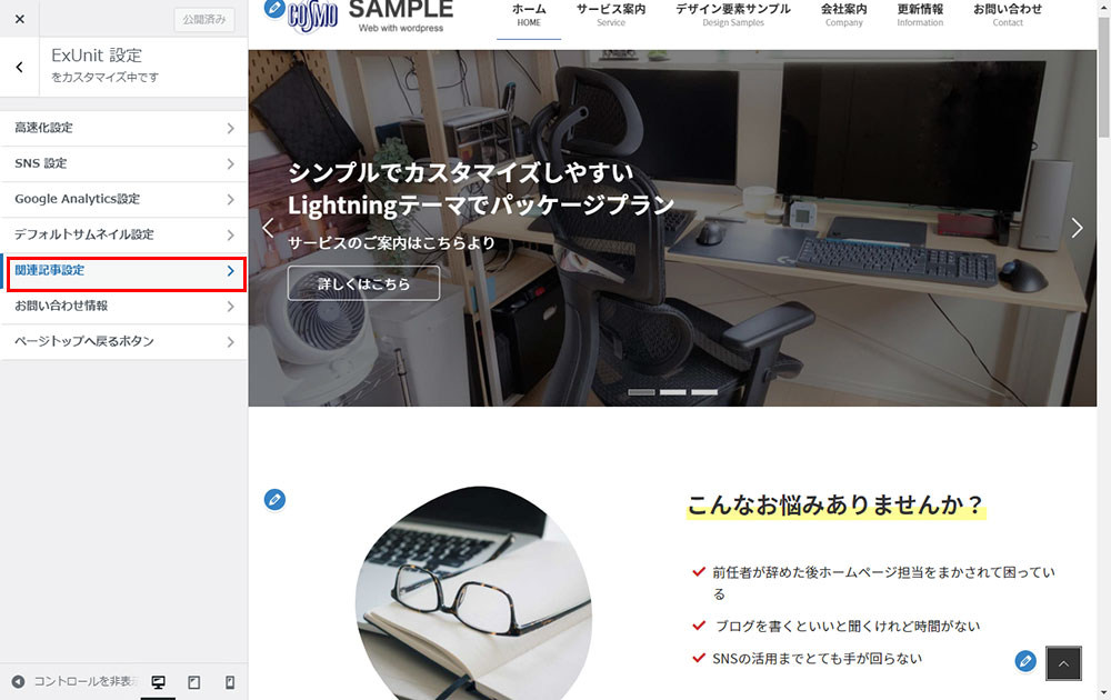 WordPressのLightningの設定方法(ExUnit 設定-関連記事設定)について説明します。