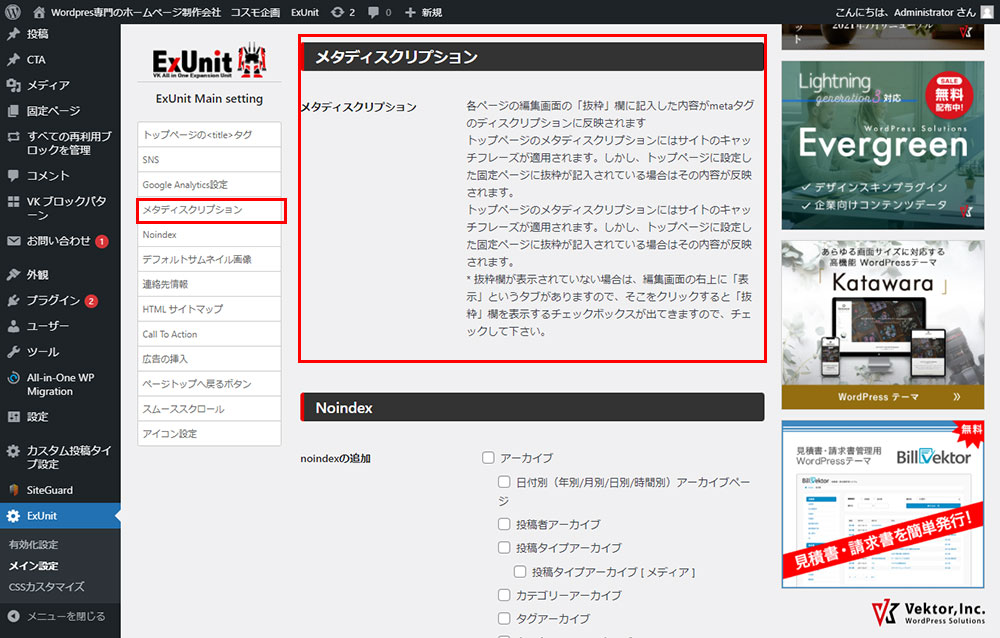 WordPressのLightningの設定方法(ExUnit 設定-メイン設定【メタディスクリプション】)について説明します。