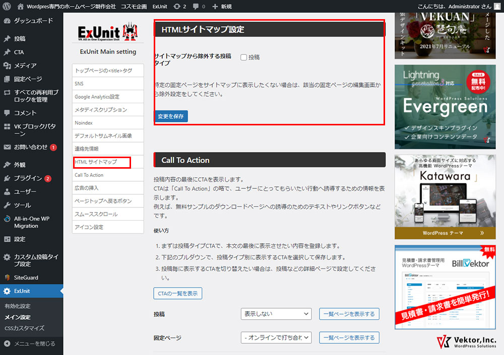 WordPressのLightningの設定方法(ExUnit 設定-メイン設定【HTMLサイトマップ設定】)について説明します。サイトマップが自動的に作成することができます。また、運用途中のサイト名変更やコンテンツ削除なども自動的に対応しているのもおすすめの理由です。