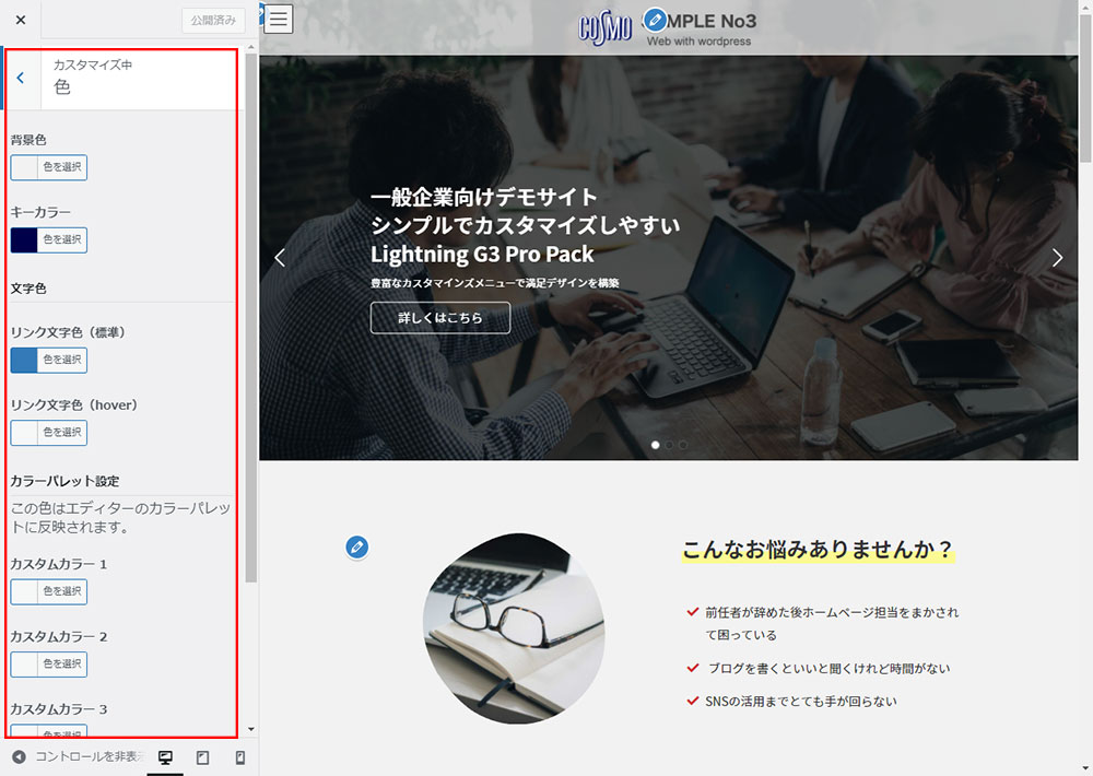 WordPressのLightning G3 Pro Unitの設定方法(色)について説明します。