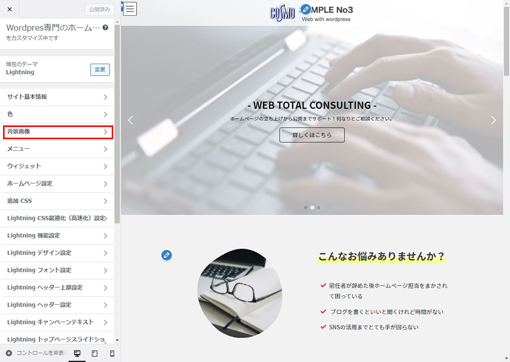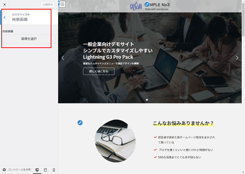 WordPressのLightning G3 Pro Unitの設定方法(背景画像)について説明します。