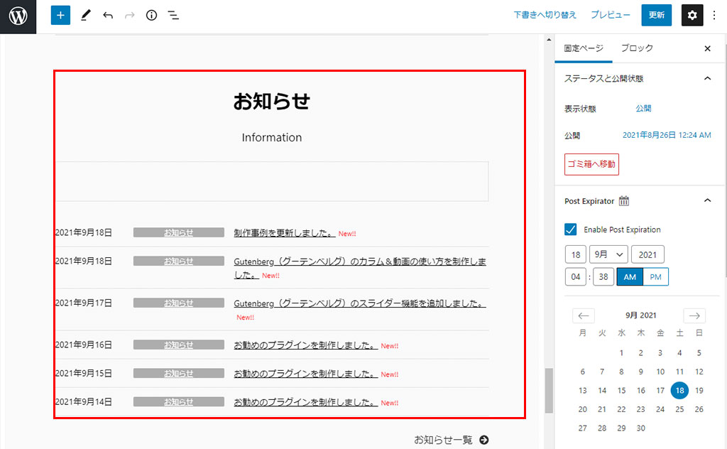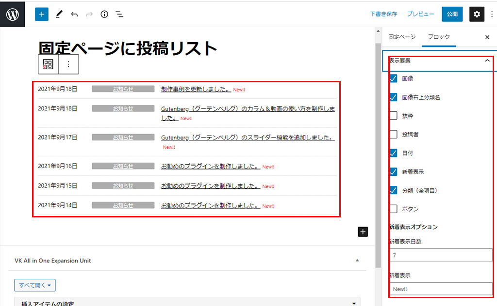 左側のボックスを確認する事が出来ますがプレビューでも確認することをお勧めします。(お好みでNEW!表示を投稿日より何日間表示できるようになったのが便利)