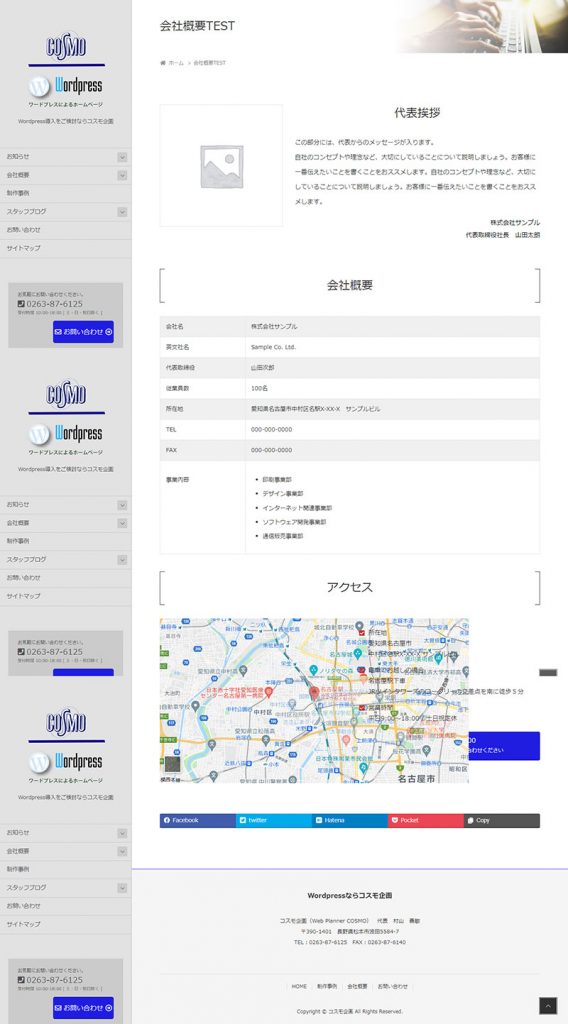 会社案内の他、商品またはサービスのPRページ、FAQ、ギャラリーなど多彩なテンプレートが用意されているので便利。