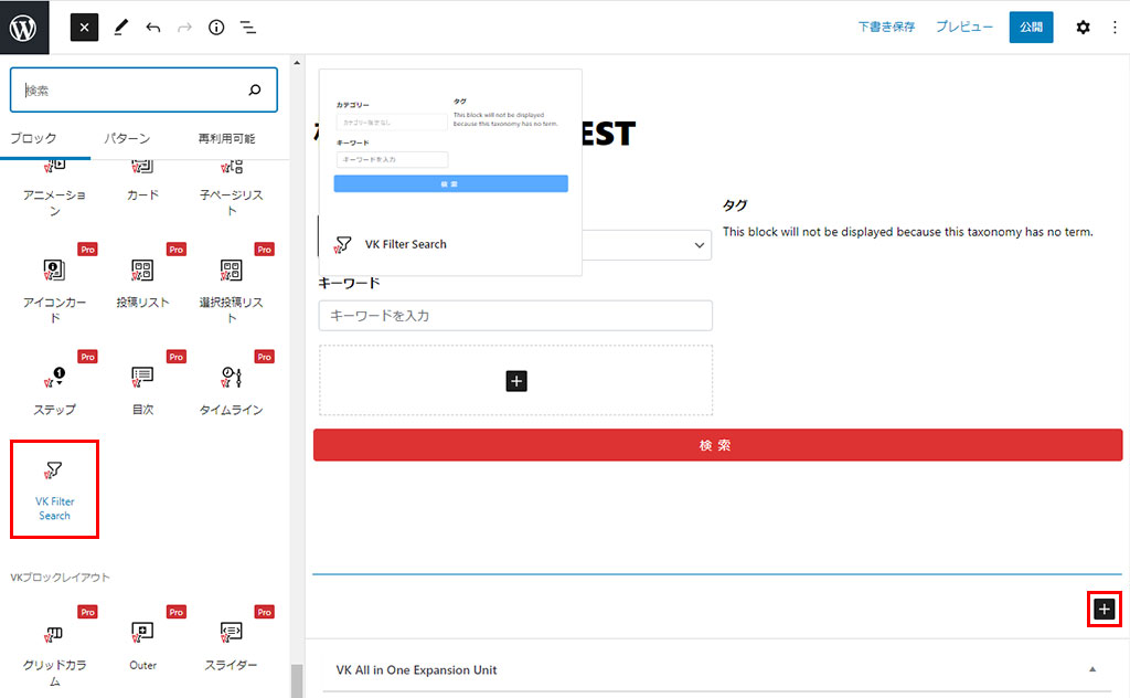 赤枠の+キーをクリックしてVK Filler Searchを選択