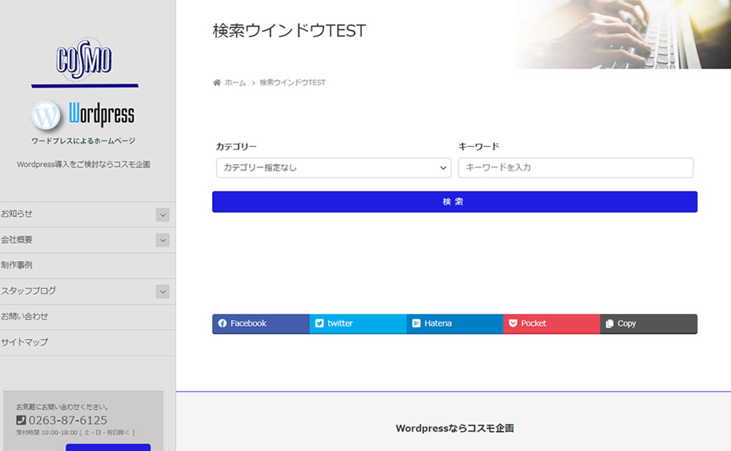 従来のテキストリンクは、健在ですが、今回ご紹介するのは(プルダウンでカテゴリー選択)&テキスト検索。ちょっと複雑な検索ができます。