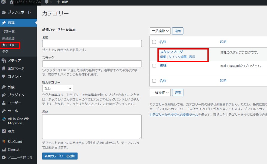 WordPressのカテゴリーに関しては、下記ページにマニュアルを記載しています。