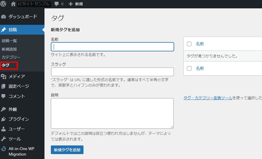WordPressのタグに関しては、下記ページにマニュアルを記載しています。