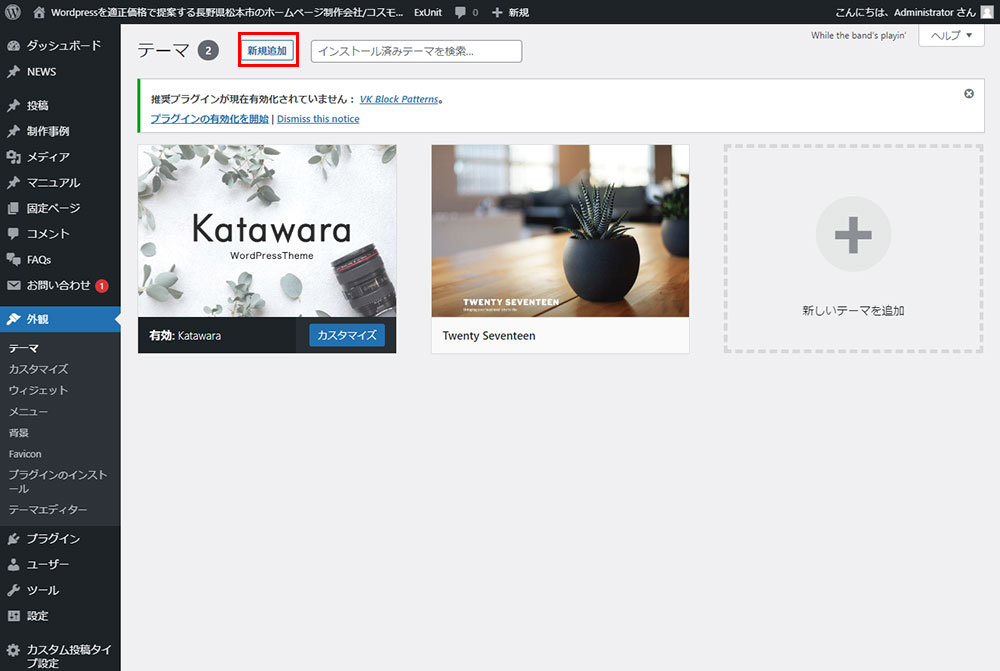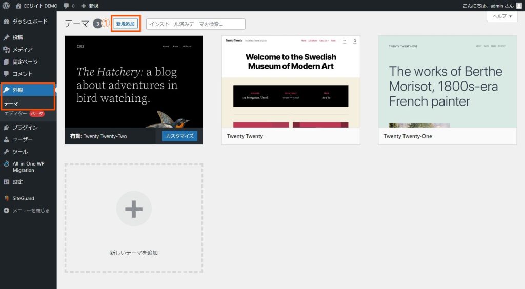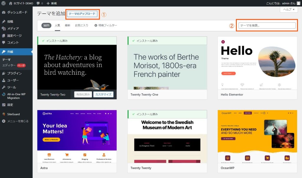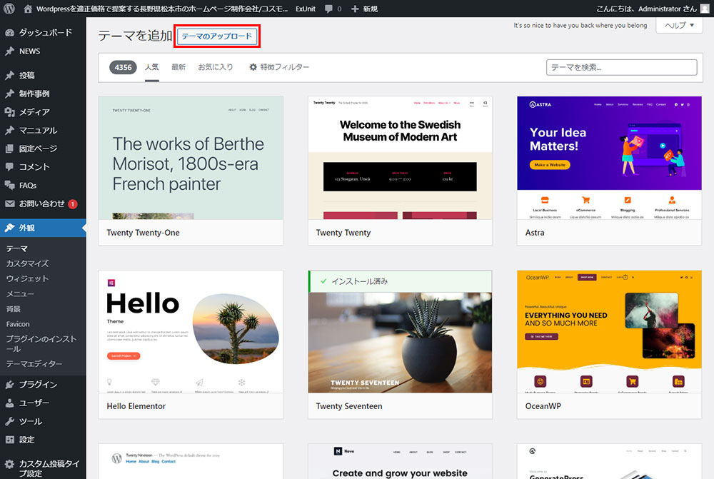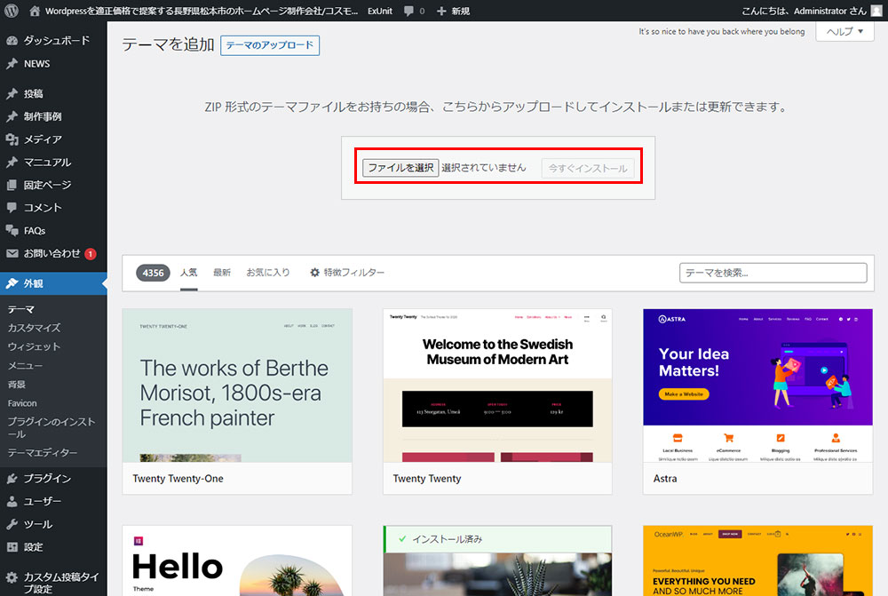 WordPressテーマは、管理画面から簡単にインストールすることができます。