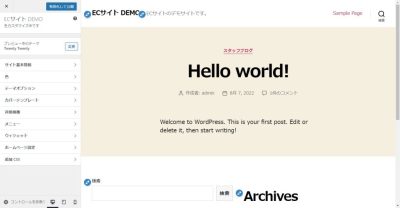 ライブプレビュー:カスタマイザ画面を通じてテーマを見ながら修正できます。(テーマによる)