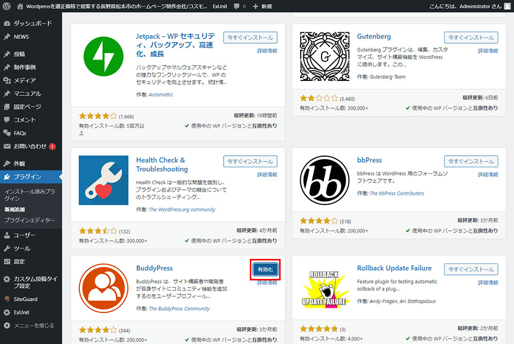 WordPressのプラグインの使い方:プラグインの有効化